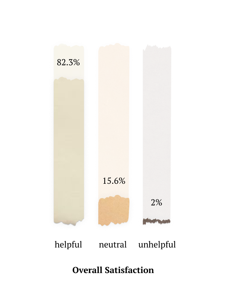 For overall satisfaction, 15.6% of participants found the effect neutral or complicated, with one writing,